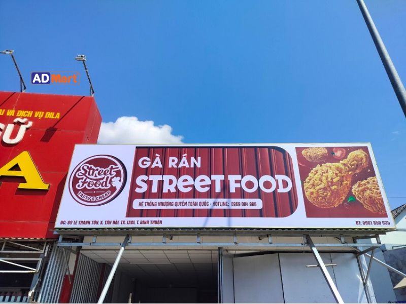 Nhờ in trực tiếp trên nhiều bề mặt, AD Mart có thể đáp ứng đa dạng nhu cầu làm biển bán gà, từ cửa hàng truyền thống đến mô hình hiện đại.