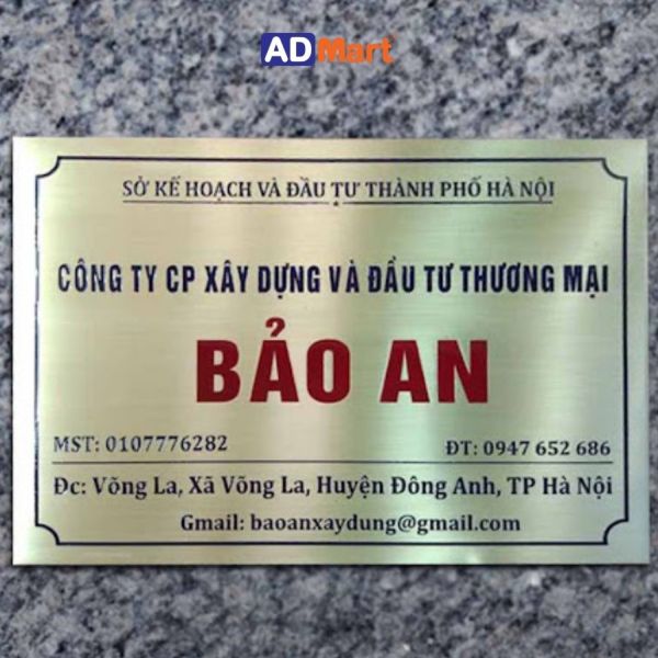 AD-Mart là đơn vị chuyên thiết kế và sản xuất biển công ty inox ăn mòn. Các mẫu bảng hiệu công ty inox mà chúng tôi mang đến cho khách hàng đều đảm bảo chất lượng inox tốt nhất.